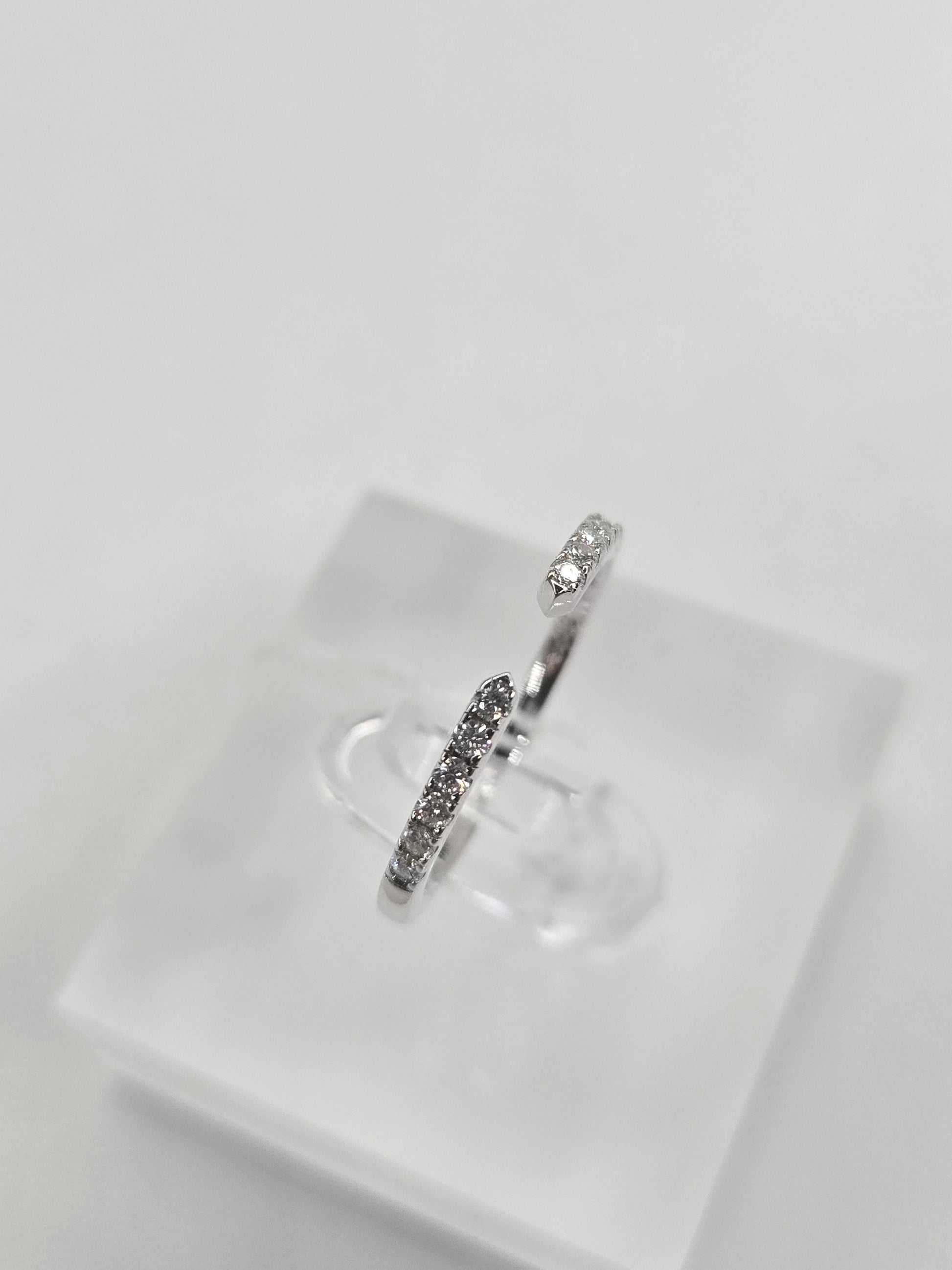 Enhance your engagement ring with this open ring enhancer, crafted from rhodium-dipped sterling silver and adorned with 1.6mm DVVS1 round moissanites. Its refined design adds a touch of brilliance and sophistication, perfectly complementing your existing jewelry with lasting elegance and shine.