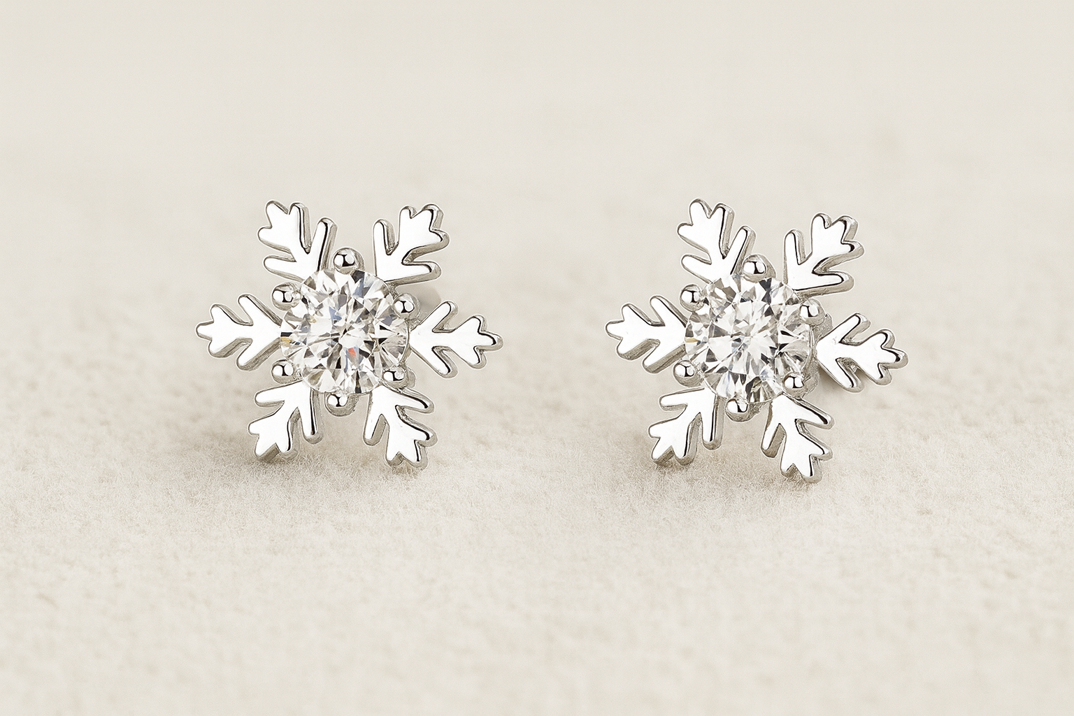 Celebrate the winter season with these sophisticated Seasonal Moissanite Snowflake Stud Earrings. Crafted from 925 sterling silver and rhodium dipped for enhanced shine and durability, each earring showcases a dazzling DVVSI Moissanite designed to resemble a delicate snowflake. Perfect for Christmas or winter occasions, they add timeless sparkle and refined elegance to your look.